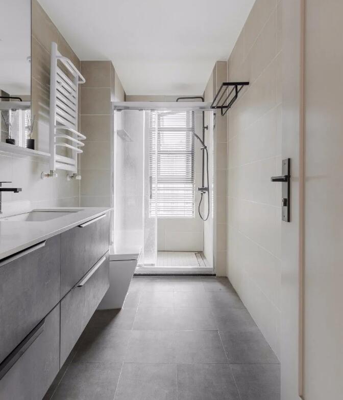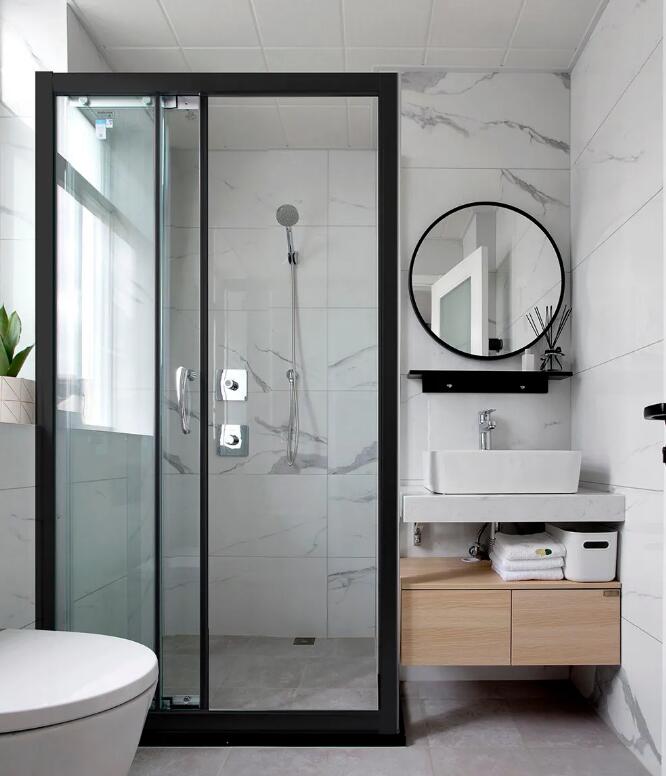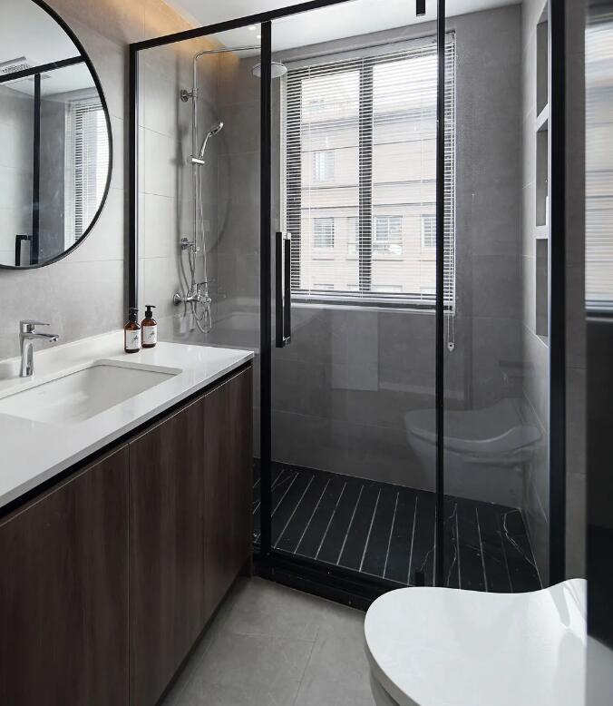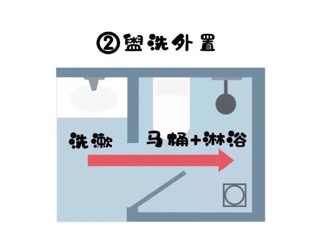 在这种情况下,干湿分离是最容易实现的,不需要拆除和改变墙壁,也不需要改变厕所,只用于淋浴区和玻璃隔断来阻挡水。洗脸台和厕所的位置可以根据自己的房子类型设计,也可以根据使用习惯和方便性进行安排。