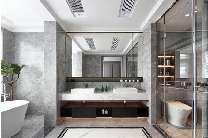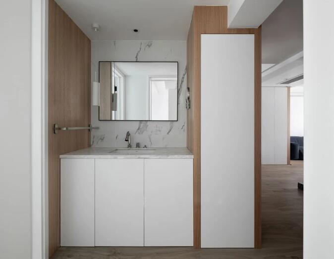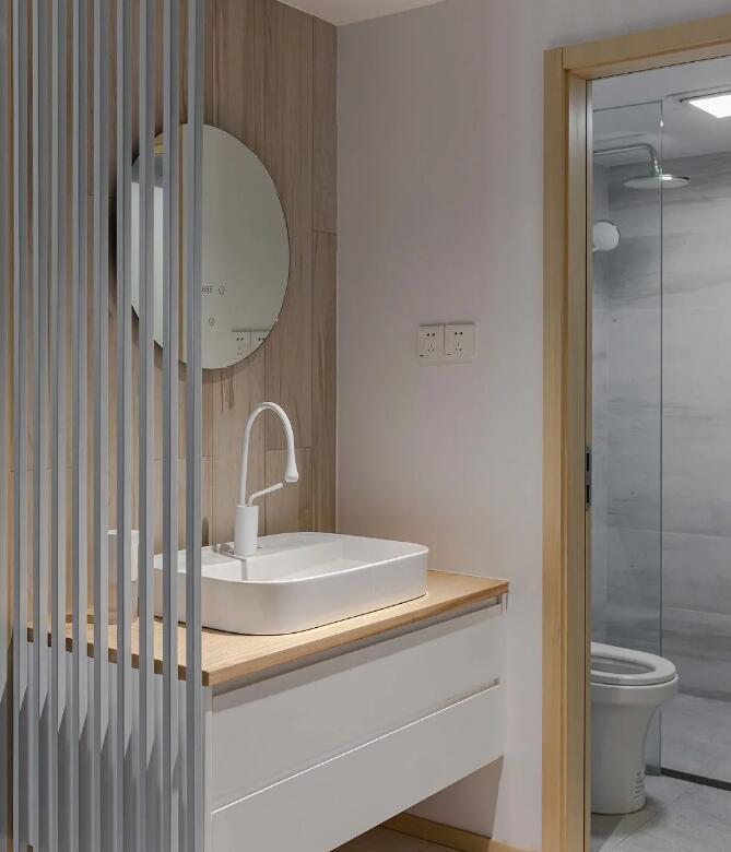 洗脸台移动现在也很常见,如果自己的房子类型是这样的,那就太方便了,不需要改造墙实现干湿分离;如果原来不是这样的设计,请设计师计划。一般来说,外面的洗脸台,会在附近的浴室门口做,所以方便做水。