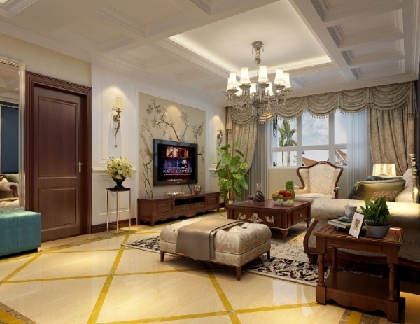 3、欧洲古典风格古典欧洲风格是一种追求华丽、优雅的古典风格,具有华丽的装饰、强烈的色彩、精致的造型,达到优雅的装饰效果。欧洲客厅的顶部喜欢使用大型的灯池,并使用华丽的枝形吊灯来营造一种氛围。门窗的上半部分大多是弧形的,并用有图案的石膏线边缘。室内有真正的壁炉或假壁炉形状。墙面采用高档壁纸,或高品质