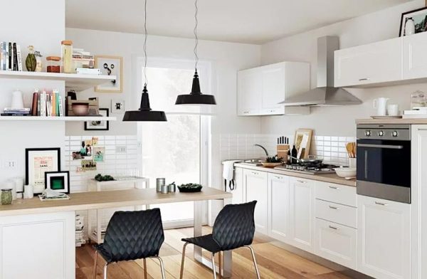 这种设计方法是将条放置在靠近墙壁的位置,在桌子的顶部,你可以放置一些隔板或设计一个橱柜来放置物品。这种设计方法的优点是占地面积小,餐厅和卧室都可以设计,但同时可以容纳相对较少的人,适合小家庭。