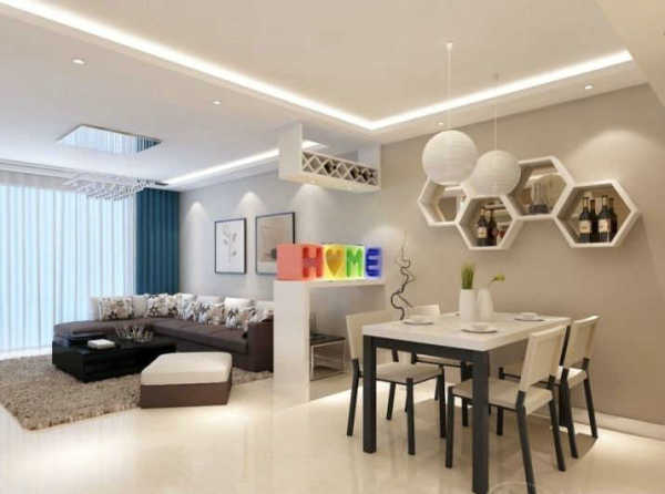 3、小家庭装修,应避免墙隔断,可使用一些软隔断,如屏幕、低柜。空间分为几个功能区,如研究和隔间,以提高小房间的使用效率。你也可以把客厅和餐厅分开。