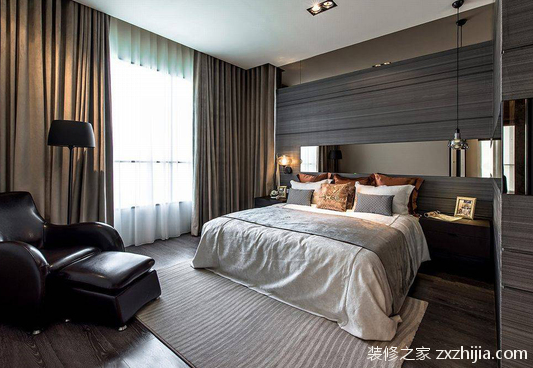 床占卧室最大面积,是卧室设计的重点。只有安排好床的位置,才能更好地控制设计、色彩、风格和布局。