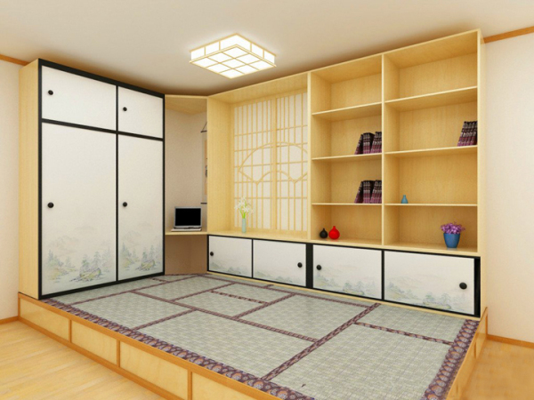 对于小房子,榻榻米的设计高度取决于房子和所需的存储空间。对于高小户型,如3米以上,则选择大于40CM榻榻米左右更实用。如果相对较短,榻榻米的高度也会相对降低。此外,对于小家庭榻榻米,选择简单的天花板设计或不做天花板,使整个空间更加舒适。