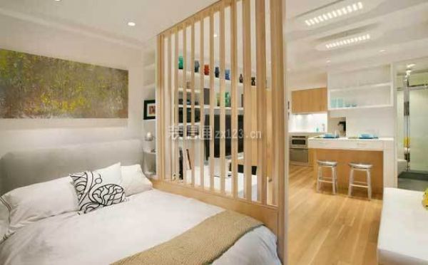 几十平米单身公寓户型,卧室、客厅等空间被设置在同一个空间